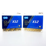 New KMC X12 Gold Ti-N 12-Speed Road / Mountain Bike Chain, 126-Links.  New in the retail box as shown with MissingLink chain link included (no tools required).