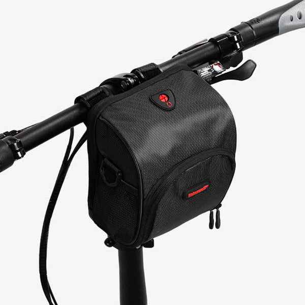 ・折りたたみ自転車にも装着可能なフロントバッグ(ハンドルバーバッグ)・持ち運びに便利なショルダーストラップ付属・防水カバー付き・容量:1.8L・素材:ポリエステル