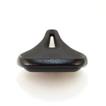 A large relief channel was cut out of the flat structure of the slim saddle to minimize pain in the pubic bone area. In addition, large gel pads distribute and absorb pressure in the seating area.