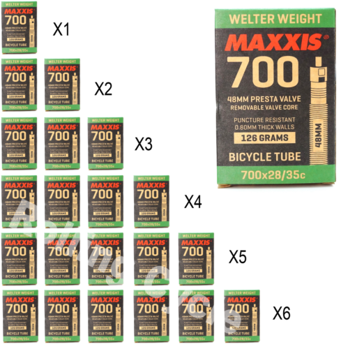 1Pack - 6 Pack Maxxis Welter Weight 700x28-35C 48mm Bike Inner Tube Presta FV 1Pack - 6 Pack Maxxis Welter Weight 700x28-35C 48mm Bike Inner Tube Presta FV