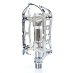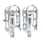 The quill type cage plate allows pedaling with wide shoes when clips are attached.