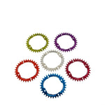 The Stronghold Narrow Wide from Kore uses a patented hooked tooth design which grabs and holds the chain around the ring when riding without slowing down release at the appropriate point.