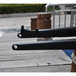 ・極太のタイヤが特徴のファットバイク・タイヤがしっかりと接地するので、砂地、オフロード、多少の雪道でも走行可能・フレームとフォークのみのセット販売(BB、ヘッドセット等は付属しません)・ディスクブレーキ対応サイズ:26インチ材質 : T700 カーボンカラー : UDつやなし、UDつやありフレーム重量 : 1380gフォーク重量 : 540gトップチューブ長 : 570mmシートチューブ長 : 18 インチヘッドチューブ長 : 110mmBB長 :120mm スレッド式リアハブ長   : 190mm×12mm スルーアクスルフロントハブ長 : 135mm×15mm スルーアクスルシートポスト径 : 31.6mmタイヤサイズ : 26 ×...