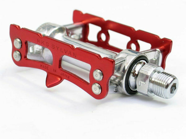 MKS Prime Sylvan Track Alloy 9/16" Toe Clip Compatible Bicycle Pedal Red or Blue MKS Prime Sylvan Track Alloy 9/16" Toe Clip Compatible Bicycle Pedal Red or Blue