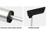 Material : aluminum alloySize  : 29.2*2.8cmWeight   : 175gLength : Max 46cm Presure  : 120PSI and aboveValve     : A/V and F/V compatibleFeature : single cylinder,foldable footplateThis product is shipping from China