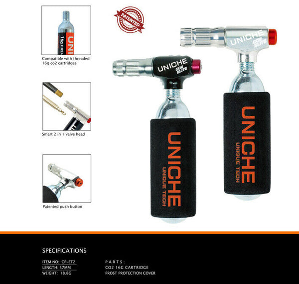Uniche CO2 Injector Elite Bike-Co2-Tire-Inflator-Head-Presta-Schrader-Valve dual Uniche CO2 Injector Elite Bike-Co2-Tire-Inflator-Head-Presta-Schrader-Valve dual