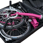ブロンプトン Bromptonの折りたたみ自転車をぴったりサイズで収納可能な輪行バッグですキャスター付きのスーツケースタイプサイズ:63x63x28mm重量:6.45kg素材:EVA