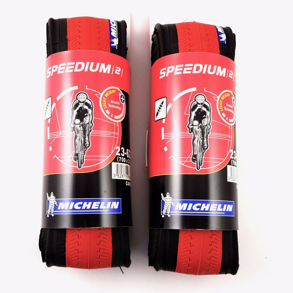 2 x Michelin Speedium 700 x 23C Road Bike Foldable Tire Tyre - Black/Red - Pair 2 x Michelin Speedium 700 x 23C Road Bike Foldable Tire Tyre - Black/Red - Pair