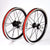 Fit for : 14 inch folding bike Material : Alminium 6061Rim Tape : NylonFront spoke : 16HRear spoke : 20HSpoke : stainless steelColor : Black , Red Hub :9T single...