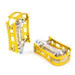Body:AlloyPlate:Alloy/Anodized (Copper-Plated)Size:W98 x L61Step Area:Double sidedBearing:CUP & CONE BEARINGSToe Clip:PossibleReflector:Possible(option)Purpose:OFF ROAD、CITYWeight:366g/pair Color:Silver、Black、Copper、Gold、Blue、Red
