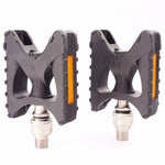 The XP-EZY features the MKS 'EZY' removable pedal axle which allows the pedals to be quickly removed,making them ideal for folding bikes,or those stored in confined spaces.Tough nylon body, BS...