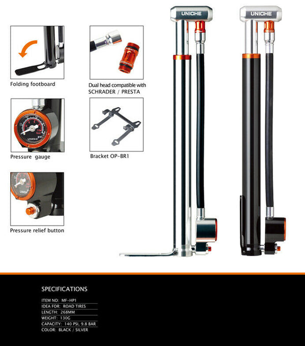 It is like a floor pump but minimized so that you can carry it when you ride. UNICHE MINI FLOOR PUMP is a lightweight and durable hand pump which is...